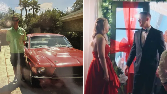 A wife tracked down her husband’s old car and planned a 1968 Ford Mustang surprise that brought him to tears when it rolled up for his 40th.