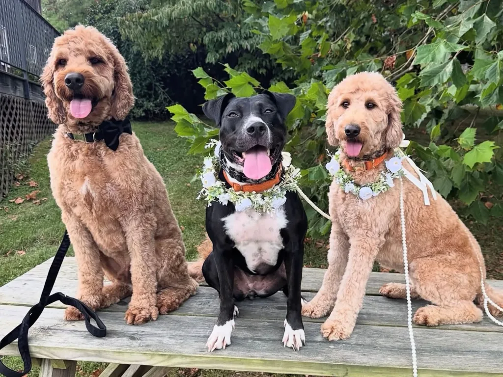 A dog-loving couple included adoptable rescue puppies in their wedding ceremony to raise funds and awareness for dog adoption.