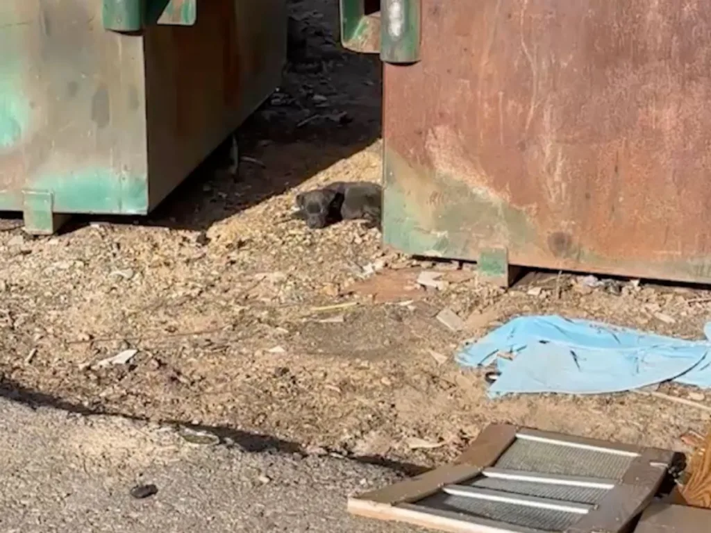 An abandoned puppy left for dead next to a dumpster was rescued when a resident discovered it while taking out his trash.