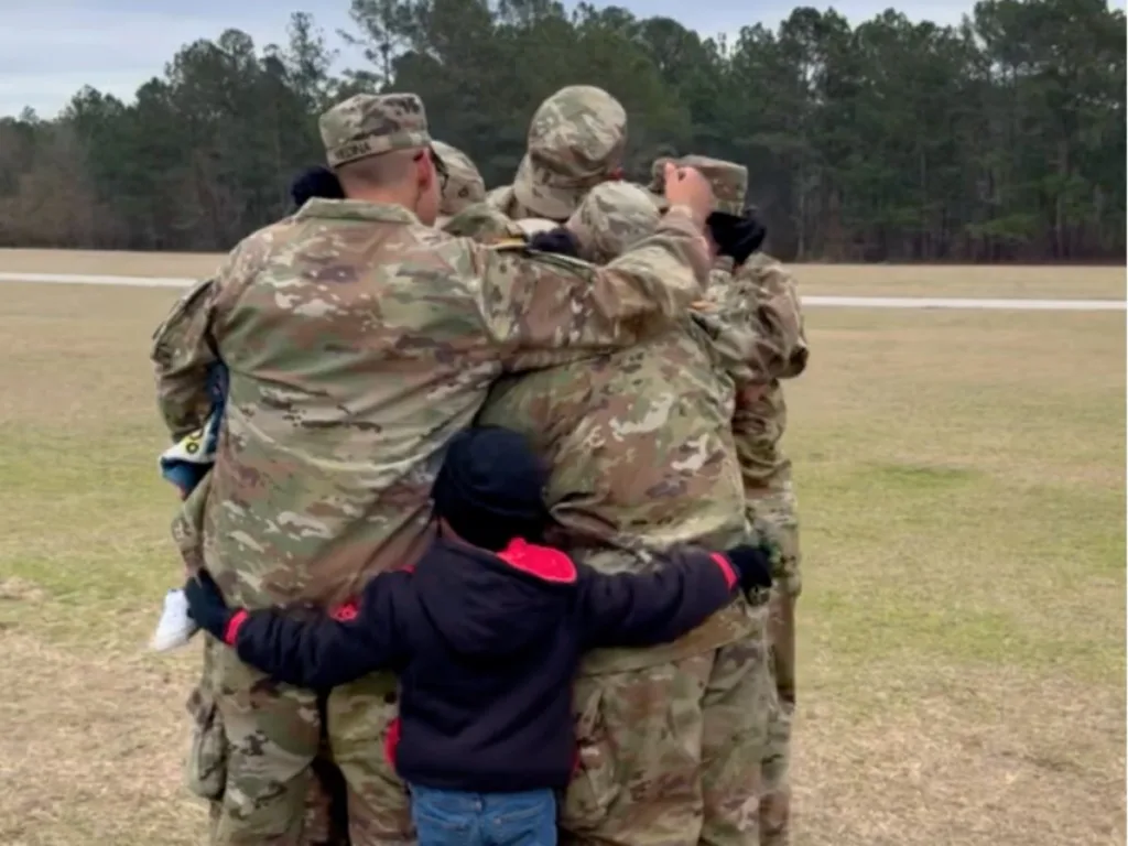Things then really hit home, during the tapping out ceremony at Fort Jackson, South Carolina, on February 22, when family members touch a soldier to be released and to enjoy the moment.